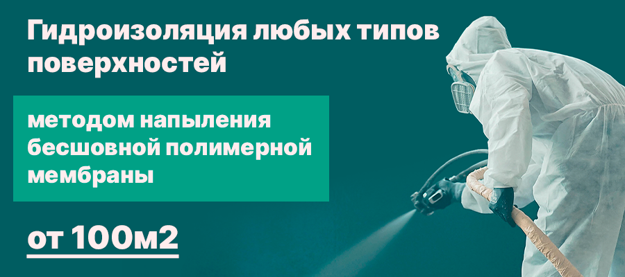 Гидроизоляция любых типов поверхностей методом напыления бесшовной полимерной мембраны от 100м2