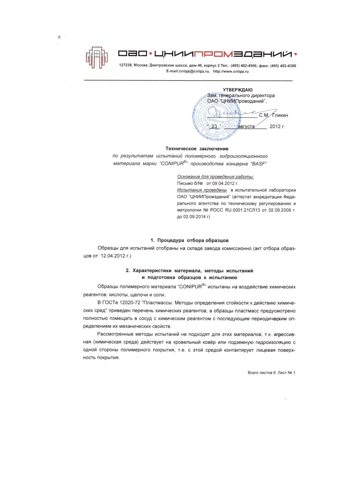 Мембраны серии Coniroof укладываются при помощи холодных методов нанесения на общую площадь поверхности. В течение последних 20 лет данным материалом выполнены работы на площадь превышающую 12 млн м2. Одобрены обществом BBA и получили сертификацию в соответствии с требованиями ЕС.