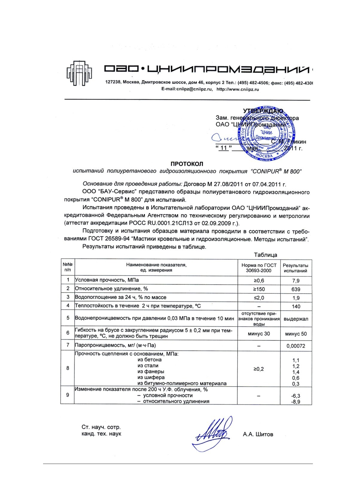 Используем материал Conipur MasterSeal M800. Он предназначен для изготовления гидроизоляционного покрытия на мостах, паркингах, кровлях высотных зданий, резервуарах, емкостях и подземных сооружениях. Не содержит растворители.